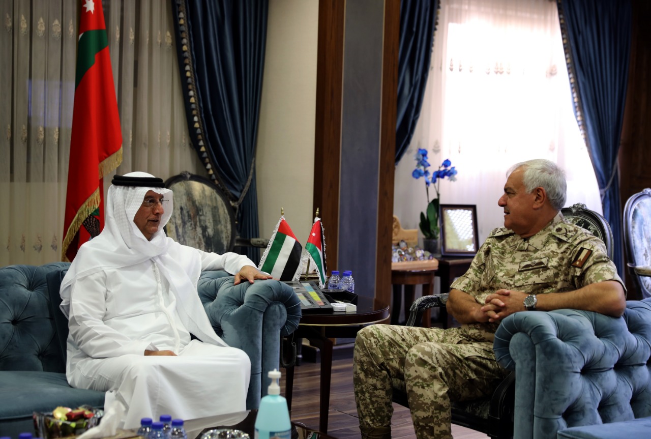 During his meeting with Emirati Ambassador Ahmed Ali Balushi, Huneiti discussed recent regional and global developments, cooperation and coordination in joint military training, and means of enhancing bilateral ties to benefit the two countries' armed forces.