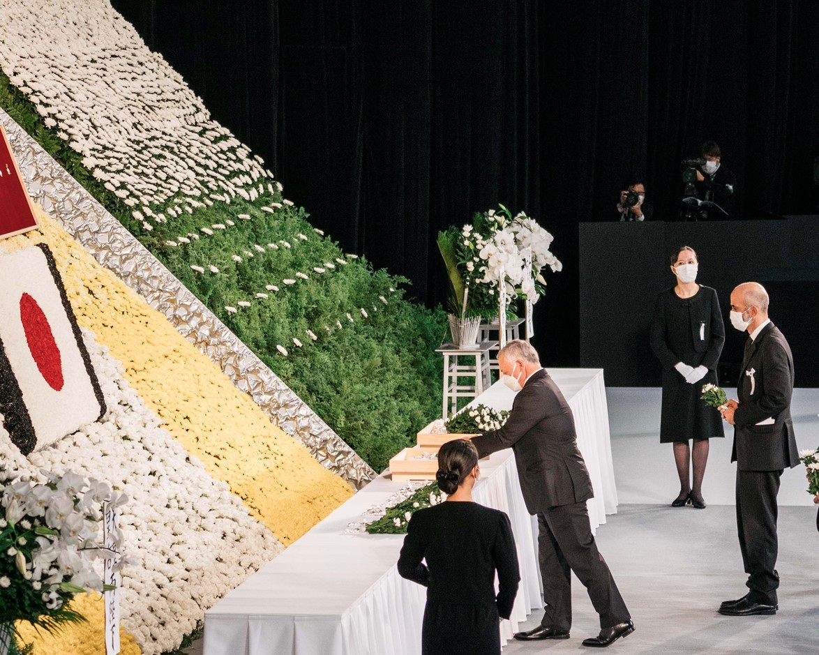 Ammon News - His Majesty King Abdullah on Tuesday attended the state funeral held for Japan’s former prime minister Abe Shinzo at Nippon Budokan Arena in Tokyo.