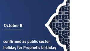 Ammon News - Prime Minister Bisher Al-Khasawneh announced an official holiday on Saturday, Oct.8,2022, on the occasion of Al Mawlid al-Nabawi al-Sharif, prophet Muhammad’s birthday which is in the twelfth of Rabi` al-Awwal of 1444 AH.