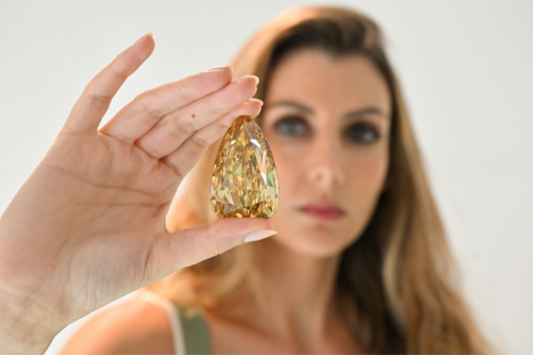 Ammon News - Sotheby's has unveiled the world's largest pure diamond, the Canary Gold Diamond, which weighs 303.10 carats and is yellow with a dark brown colour.