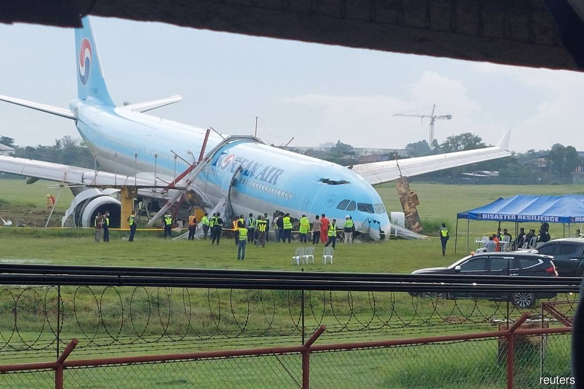 Ammon News - A Korean Air plane has overshot the runway while landing in bad weather in the central Philippines, but no injuries were reported among the 173 people on board, according to authorities.