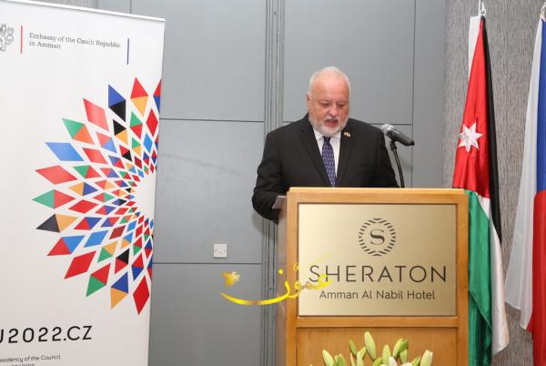 Ammon News - The Embassy of the Czech Republic in Amman held a celebration on Thursday 27th of October 2022, on the occasion of the Czech National Day. During the ceremony held at the Sheraton Hotel Amman, the Czech Ambassador, H.E Mr. Josef Koutsky, delivered a speech in which he stressed the depth of the historical relations between Jordan and Czech Republic and the aspiration to strengthen them in the future, in several areas of cooperation that unites the two countries. The ceremony were attended by H.E Mr. Mohammad Al Nabulsi , Minister of Youth and a large number of officials, diplomats, military personnel, and journalists, in addition to a number of embassy friends from many fields.