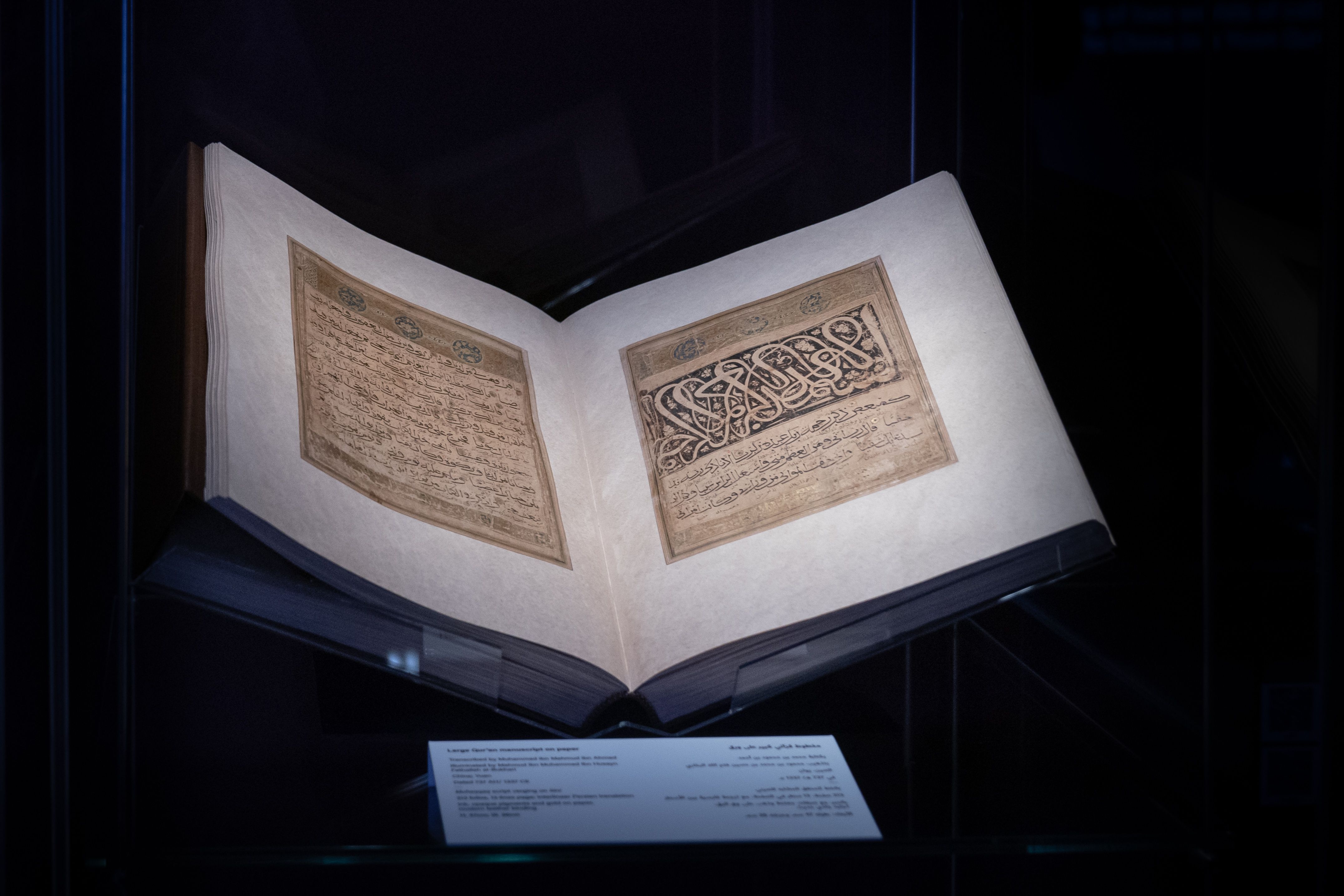 The expansive exhibition, titled Sacred Words, Timeless Calligraphy: Highlights of Exceptional Calligraphy from the Hamid Jafar Qur’an Collection, begins on Tuesday, and showcases the craftwork and detail of key pieces of Islamic calligraphy and design.