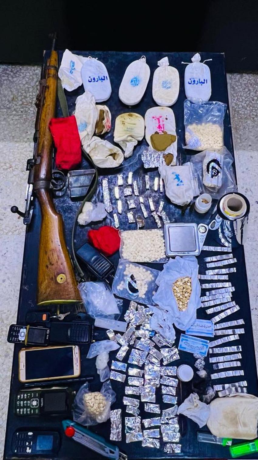 The media spokesperson confirmed that the raids led to the arrest of three drug traffickers, and five paws of hashish were seized inside the houses, in addition to 2,000 narcotic pills, crystals and hashish prepared for sale.