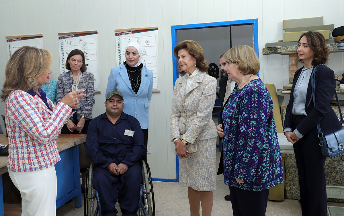 Ammon News - Queen Silvia of Sweden visited the Al Hussein Society / Jordan Center For Training and Inclusion on Wednesday, which is a leading provider of rehabilitation and education services for the disabled.