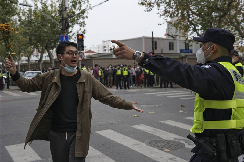 Protests broke out on Saturday after 10 people were killed in a fire in an apartment building in Urumqi, Xinjiang province.