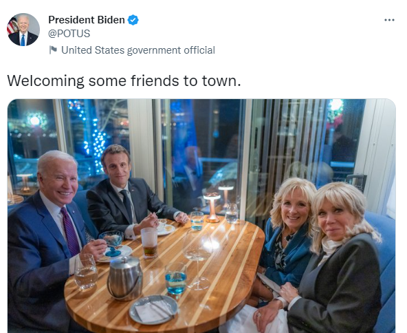 The leaders’ wives, Jill Biden and Brigitte Macron, sat across from them, without any ice cream.
