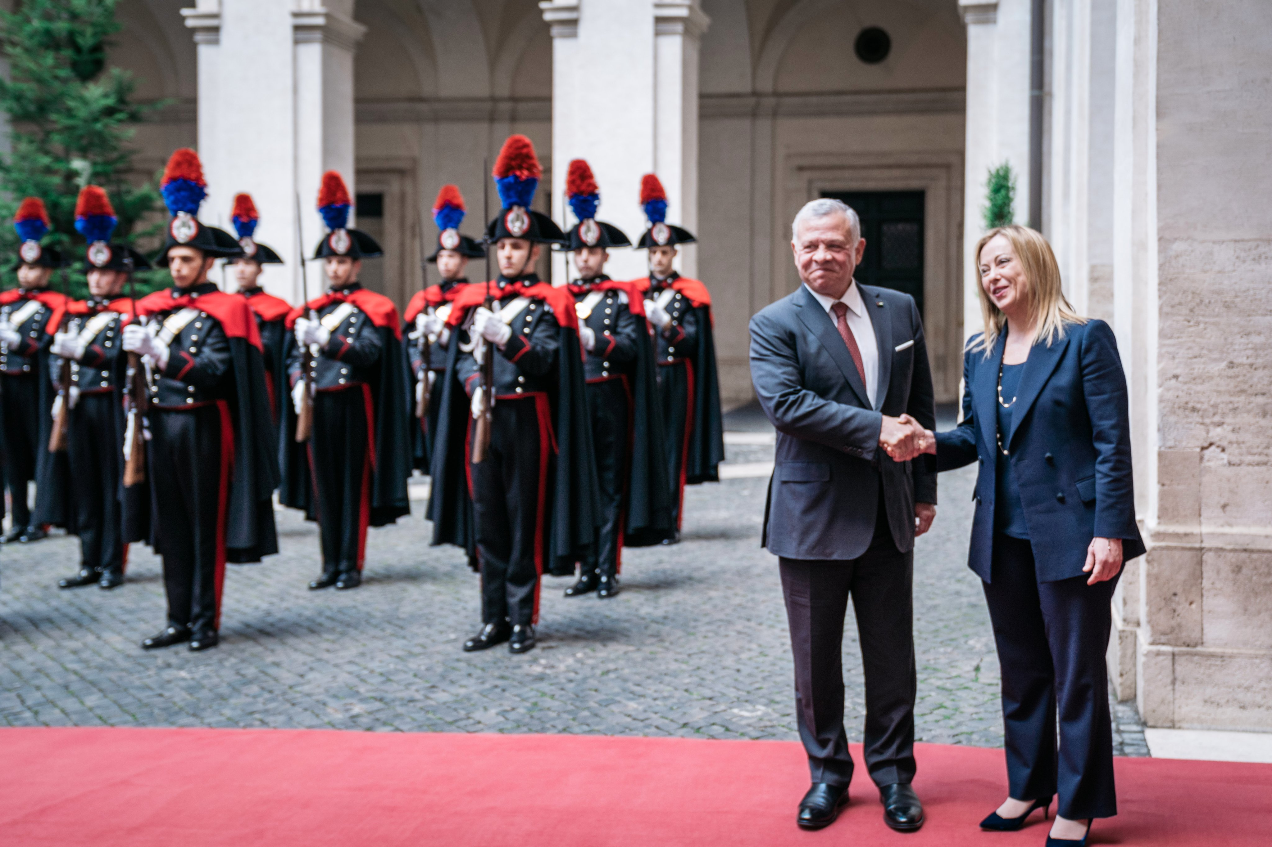 Prime Minister Meloni commended Jordan’s efforts towards countering terrorism and extremism as part of the Aqaba Process initiative, praising His Majesty’s role in highlighting the true image of Islam.