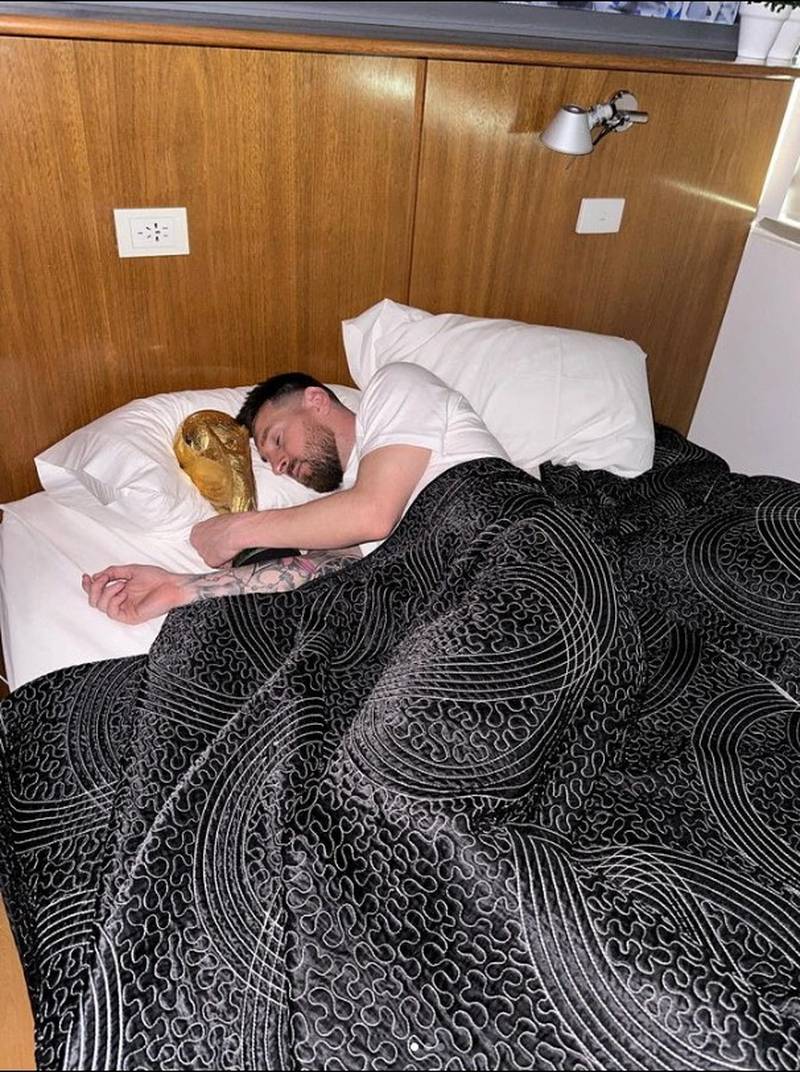 Argentina captain Messi shared the images of himself in bed with the cup at the AFA complex on Instagram on Tuesday morning, accompanied by the words: "Good morning!"