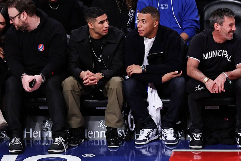 Paris Saint-Germain star Mbappe and teammate Achraf Hakimi were at the Barclays Centre in Brooklyn on Monday to watch the game between the Brooklyn Nets and the San Antonio Spurs.