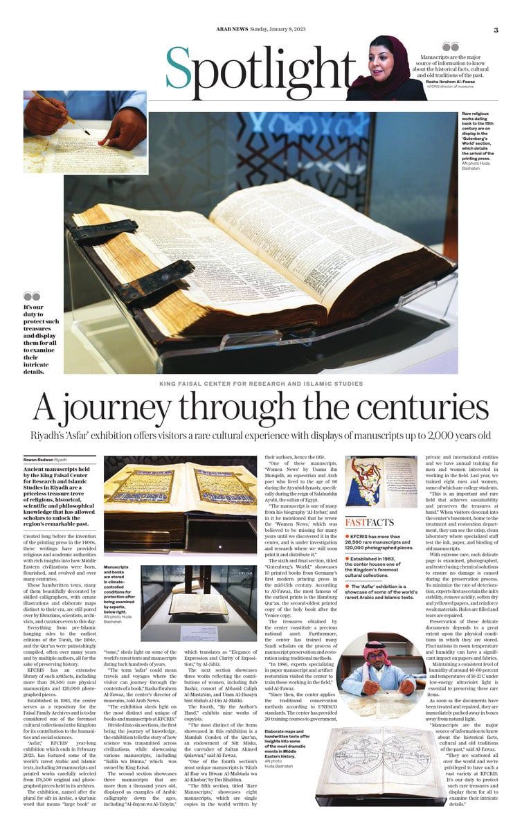 “Asfar,” KFCRIS’ year-long exhibition which ends in February 2023, has featured some of the world’s rarest Arabic and Islamic texts, including 36 manuscripts and printed works carefully selected from 178,500 original and photographed pieces held in its archives.