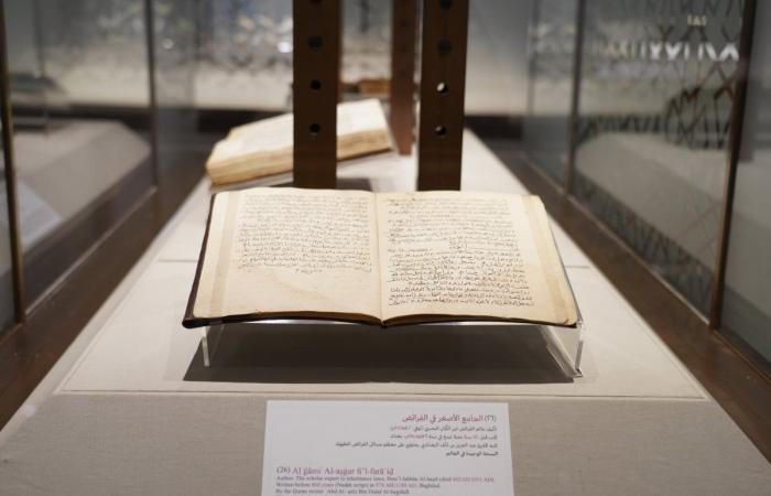 The second section showcases three manuscripts that are more than a thousand years old, displayed as examples of Arabic calligraphy down the ages, including “Al-Bayan wa Al-Tabyin,” which translates as “Elegance of Expression and Clarity of Exposition,” by Al-Jahiz.