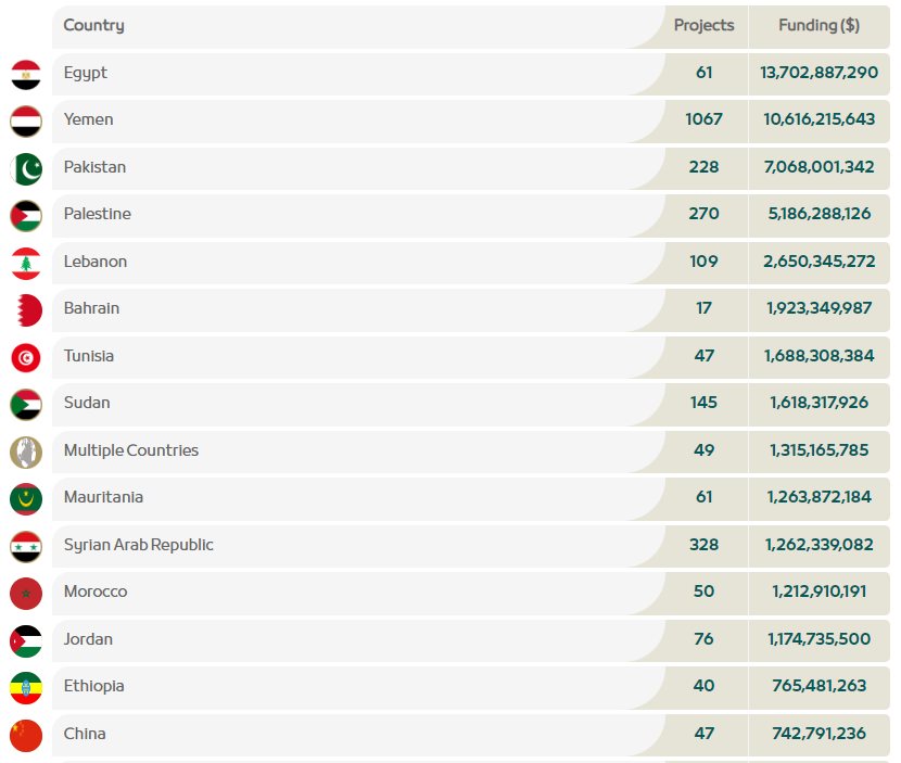 Through this financial aid, 76 developmental and vital projects were implemented in the fields of "education, food and agricultural security, energy, health, budgetary support, and other projects."