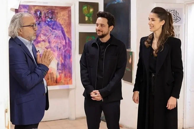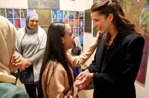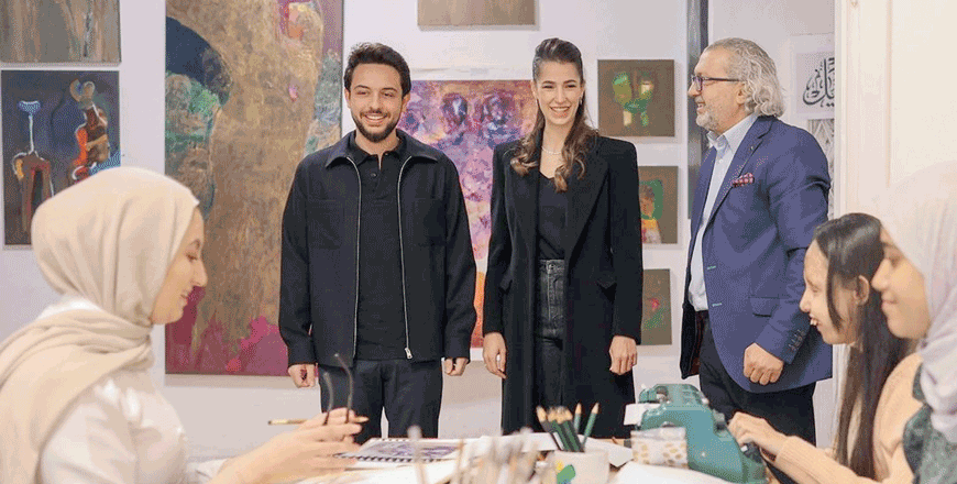 The Crown Prince and Ms Saif were briefed on the creative works of students, during a workshop at Darat Suheil by artist Suheil Baqaeen in Jabal Luweibdeh in Amman.