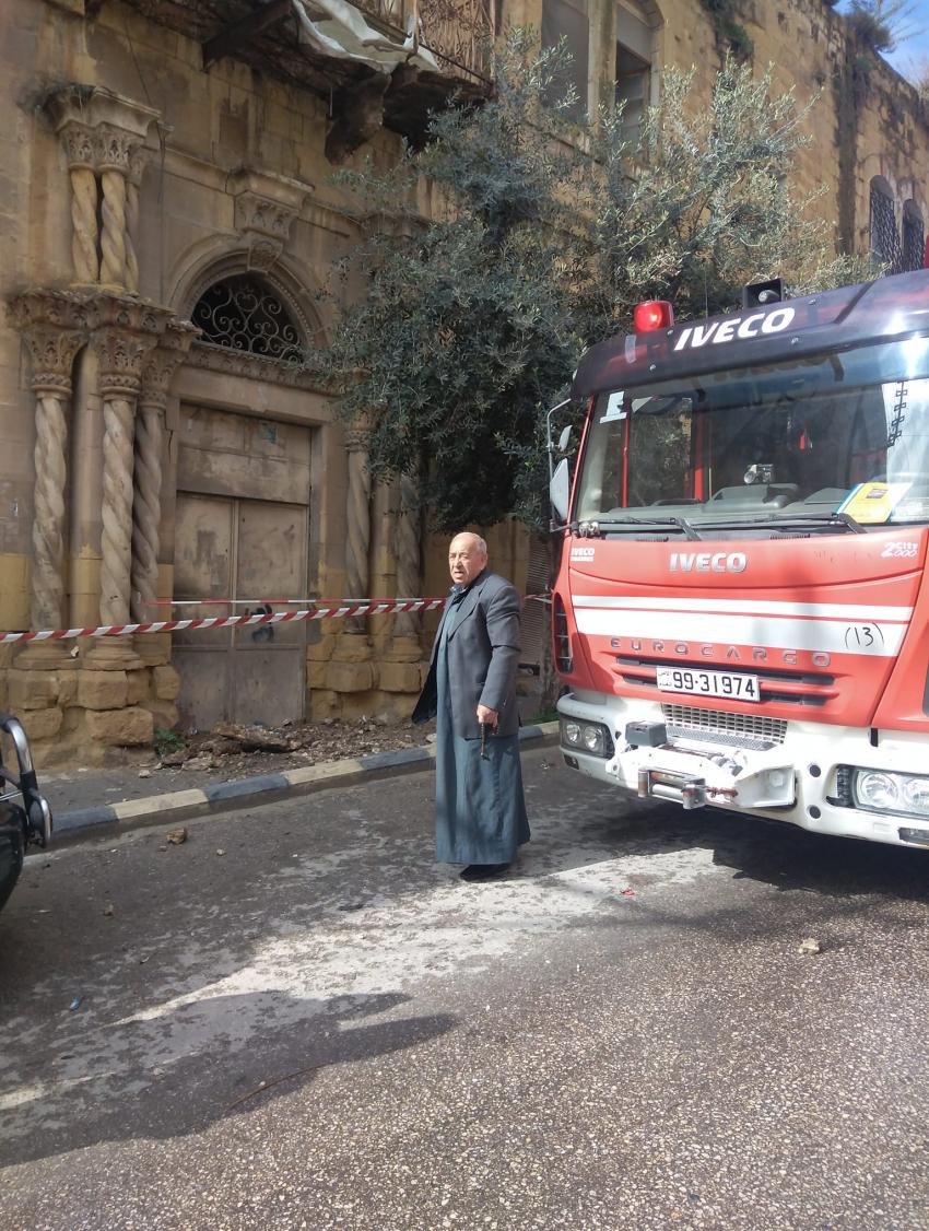 Ammon News - The civil Defense cadres in Balqa Governorate, dealt Wednesday morning with the fall of one of the balconies of the heritage house of Sheikh Falah Al Hamad, without causing any injuries.