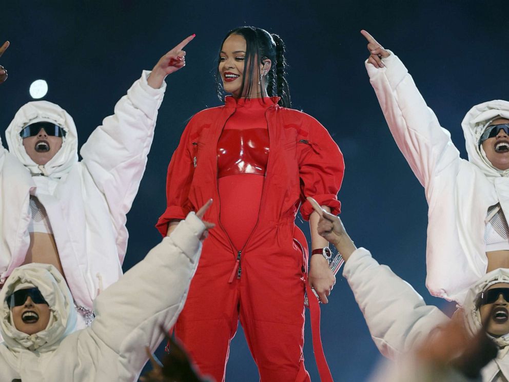 The singer gave birth to her first child, a boy, with rapper A$AP Rocky in May 2022. Rocky was spotted in the stadium crowd cheering on his girlfriend's performance.