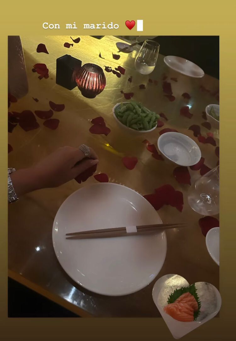 Rodriguez posted a photo of their table at the Japanese restaurant, which was decorated with rose petals, on her Instagram page.