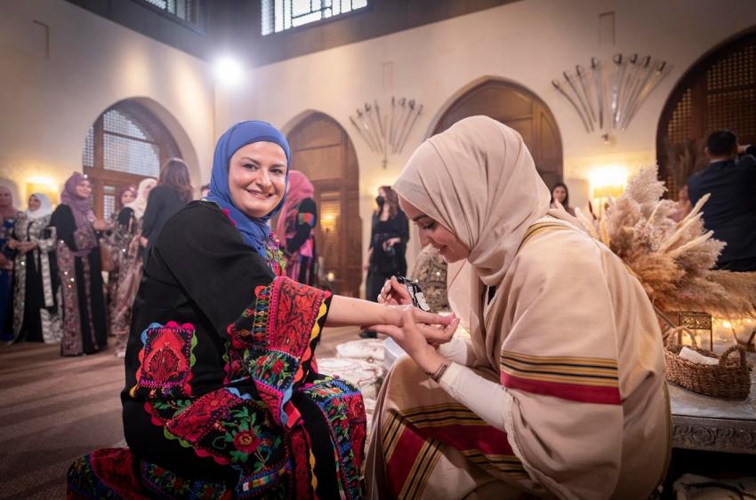Ammon News - In celebration of Her Royal Highness Princess Iman bint Abdullah and Mr. Jameel Alexander Thermiotis’ upcoming wedding, Her Majesty Queen Rania Al Abdullah held a Henna party in honor of the Princess at Al Husseiniya Palace on Tuesday.
