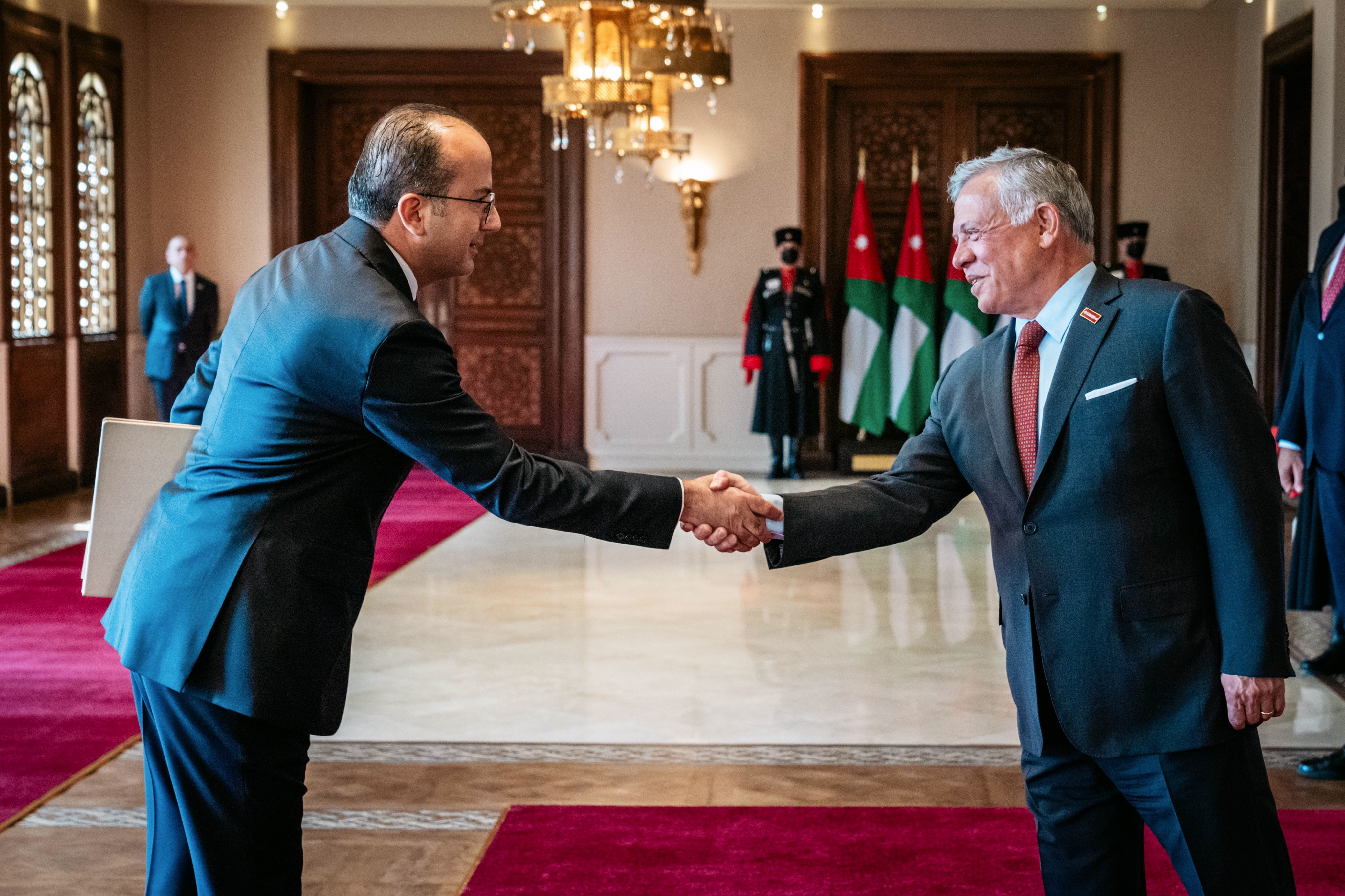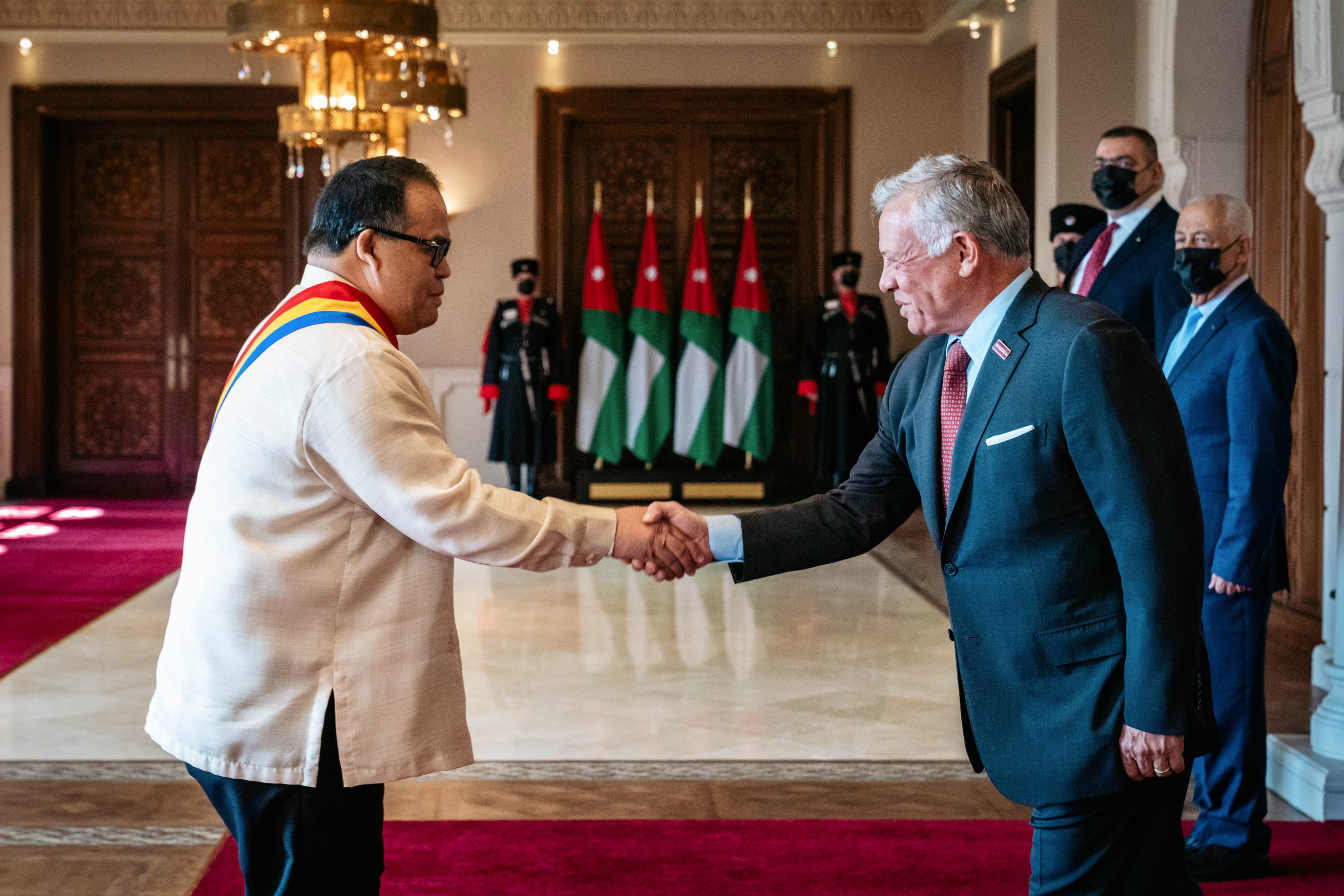 King Abdullah accepted the credentials of ambassadors Khalifa Bin Mohammed Bin Khalid Al Nahyan of the United Arab Emirates, Wilfredo C. Santos of the Philippines, Erdem Ozan of Türkiye, Kim Dong-gi of Korea, J.A.D.S. Priyangika Wijegunasekera of Sri Lanka, Mohamad Nasri Abdul Rahman of Malaysia, and the Holy See’s Ambassador Archbishop Giovanni Pietro Dal Toso, Apostolic Nuncio.