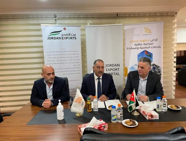 The MoU stipulates that the two sides join hands to support and stimulate Jordanian exports and support small-, medium- and large-sized companies by implementing activities with the private sector and exporters to introduce modern methods of promoting and developing exports, in addition to exploring the available export opportunities and investment incentives in the industrial cities and raising awareness of free trade agreements and exchanging information and data.