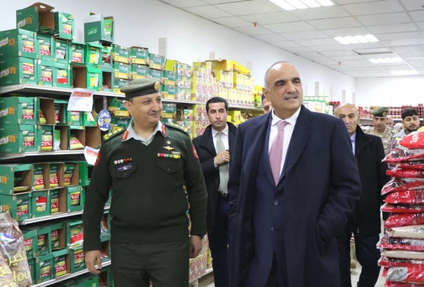 Ammon News - Prime Minister Dr. Bisher Khasawneh inspected Monday the Civil and Military Consumer Corporations in Al Mqablain and Ras al-Ein regions.