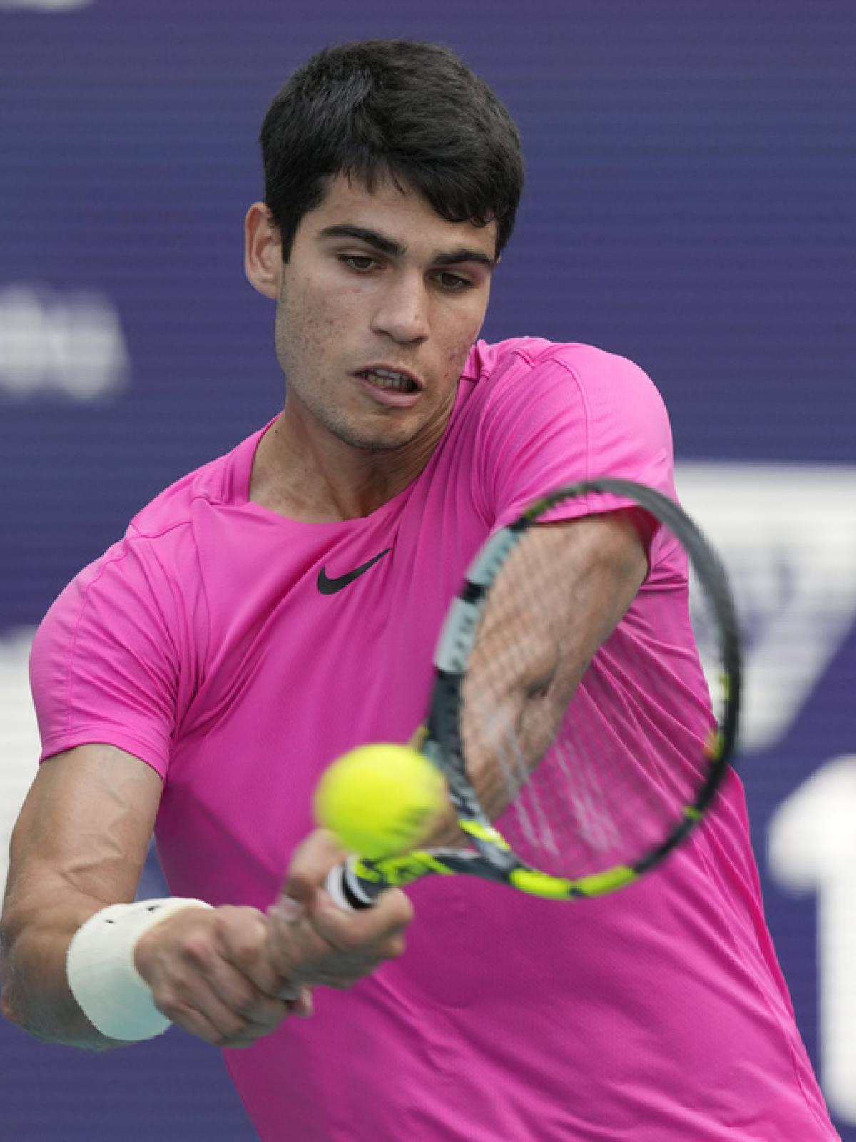 Alcaraz is now three wins away from securing the 'sunshine double' after his victory at Indian Wells last week - a triumph that would see him retain the world No 1 ranking ahead of Novak Djokovic.