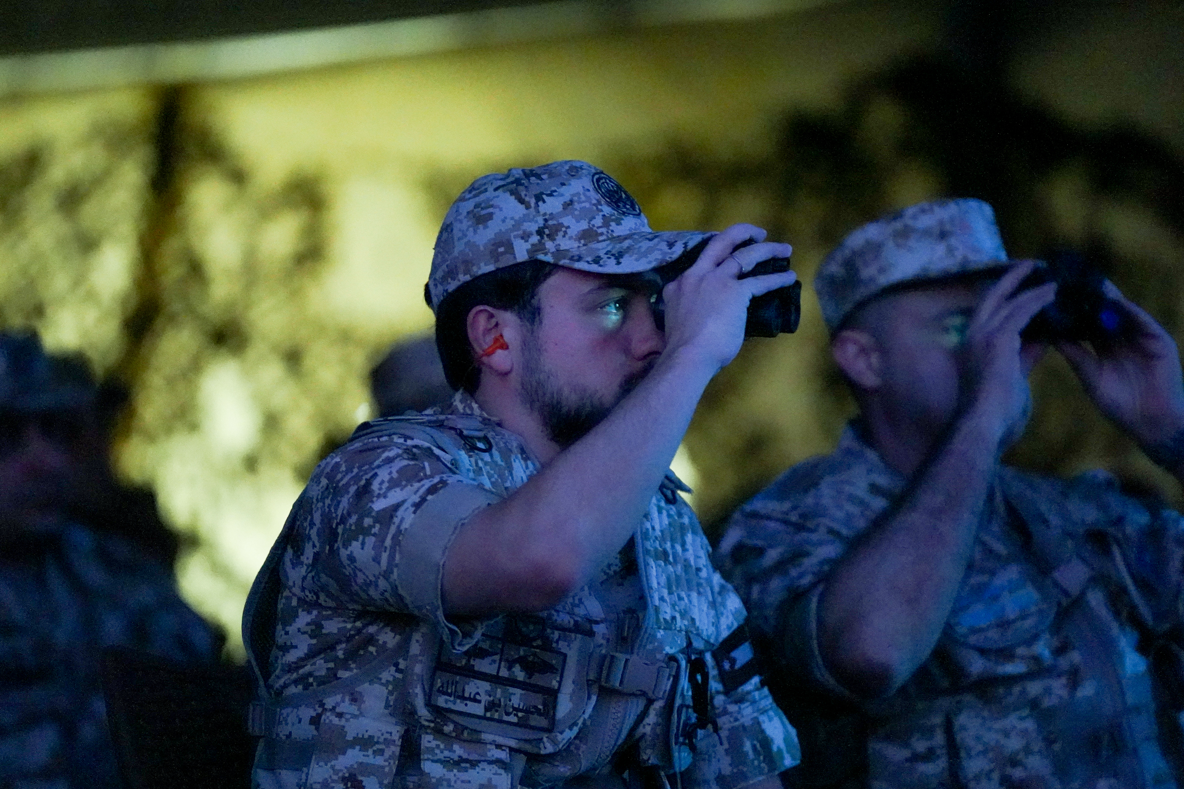 Crown Prince Al Hussein was received by Chairman of the Joint Chiefs of Staff Maj. Gen. Yousef Hneiti and Royal Jordanian Air Force Commander Brig. Gen. Mohammad Hiyasat, and was briefed on the various stages of the exercise, which aims to bolster the skills and capabilities of RJAF personnel.