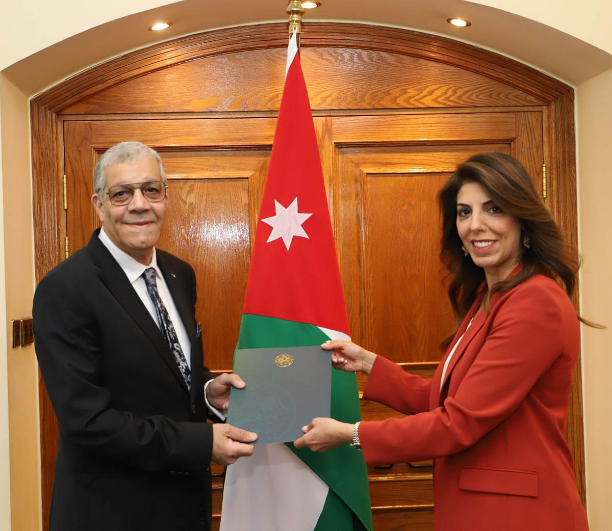 Ammon News - Secretary-General of the Ministry of Foreign Affairs and Expatriates for Diplomatic Affairs Lina Hadid on Monday received the credentials of the new Algerian ambassador to Jordan, Abdulkarim Behha, as an accredited and resident ambassador to the Kingdom.