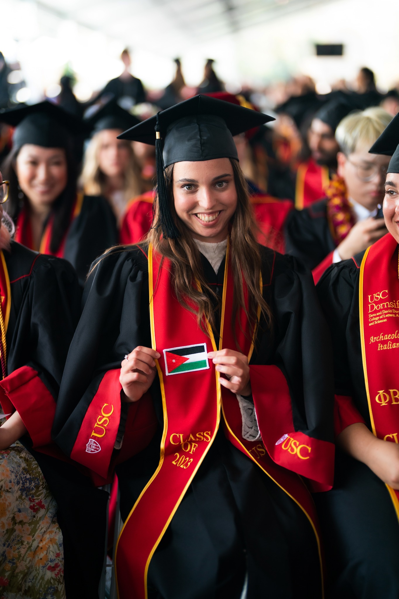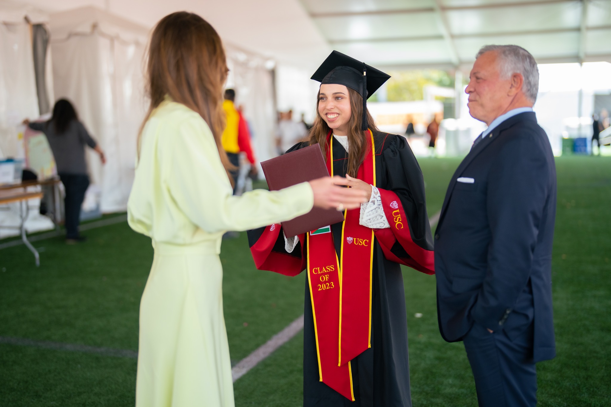 Ammon News - Their Majesties King Abdullah II and Queen Rania, Her Royal Highness Princess Iman, and Mr. Jameel Thermiotis attended Princess Salma bin King Abdullah's graduation ceremony from the University of Southern California.