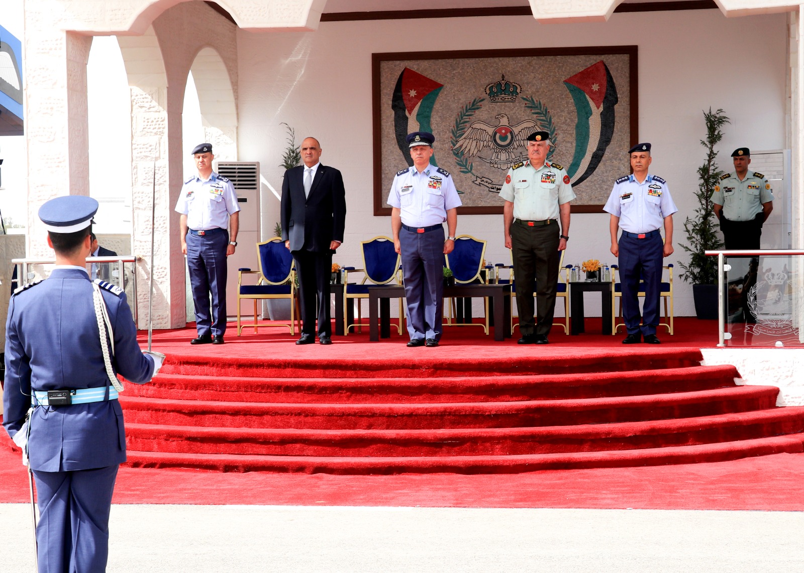 Prince Feisal was received by Chairman of the Joint Chiefs of Staff Maj. Gen. Yousef Huneiti and Commander of the Royal Jordanian Air Force Mohammad Hiyasat. Prime Minister Bisher Khasawneh was also present for the ceremony.