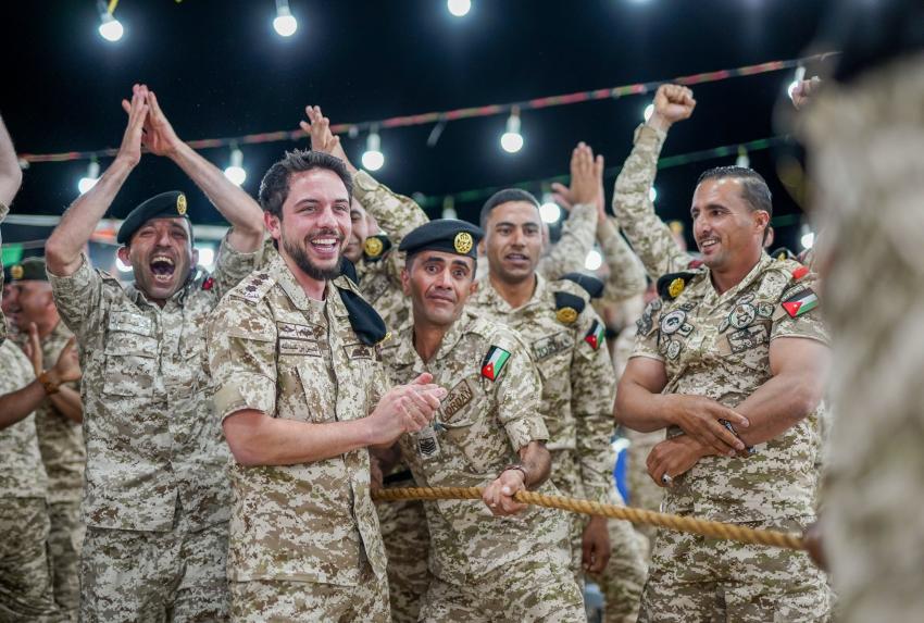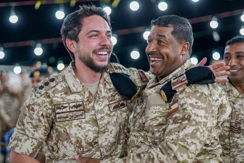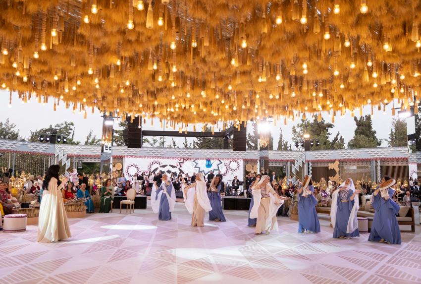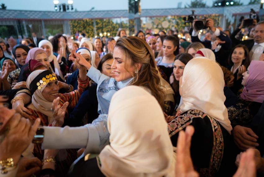 This embodiment of Jordanian popular heritage in the royal wedding is evident from the gift of the traditional embroidered headscarf (Shemagh) presented to Crown Prince Al Hussein by the honorable lady Turfa Al-Abidat from the town of "Hartha" in the northern Bani Kinanah District. It is also reflected in an enchanting Jordanian night of celebration, where comrades in arms came together to commemorate the forthcoming union of the Crown Prince, creating a joyous atmosphere.