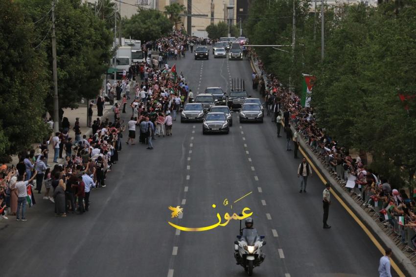 Ammon News - His Majesty King Abdullah II saluted the Jordanians who gathered on the roadsides to greet Crown Prince Al Hussein on his wedding.