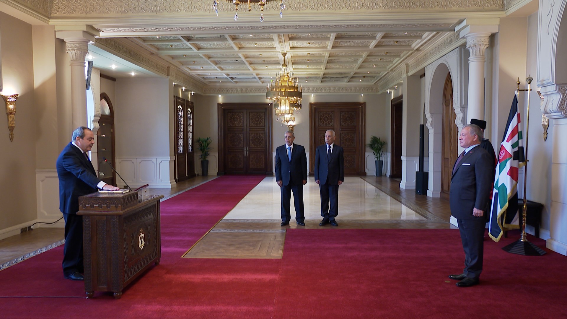 Royal Hashemite Court Chief Yousef Issawi attended the swearing-in, which took place at Basman Palace.