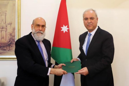 Ammon News - Acting Secretary General of the Ministry of Foreign Affairs and Expatriates for Diplomatic Affairs Hazem Al-Khatib Monday received a copy of the credentials of Ambassador of the Federal Republic of Brazil, Marcio Fagundes do Nascimento, as accredited and resident ambassador to Jordan.