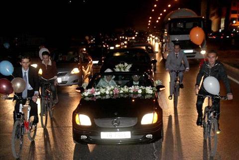 Thursday's unique 'fardeh' brought a fresh break from the routine procession, riding their bicycles, the bike racing team members accompanied the 'fardeh' from near Addustour's building on Queen Rania Street to one of the hotels in the area.