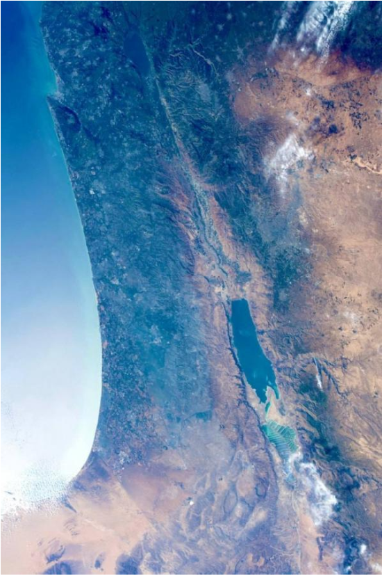 The pictures published by the "Roscosmos" show a magical scene of the Dead Sea, the Mediterranean coast, salt flats, mountains and plains surrounding the Red Sea.