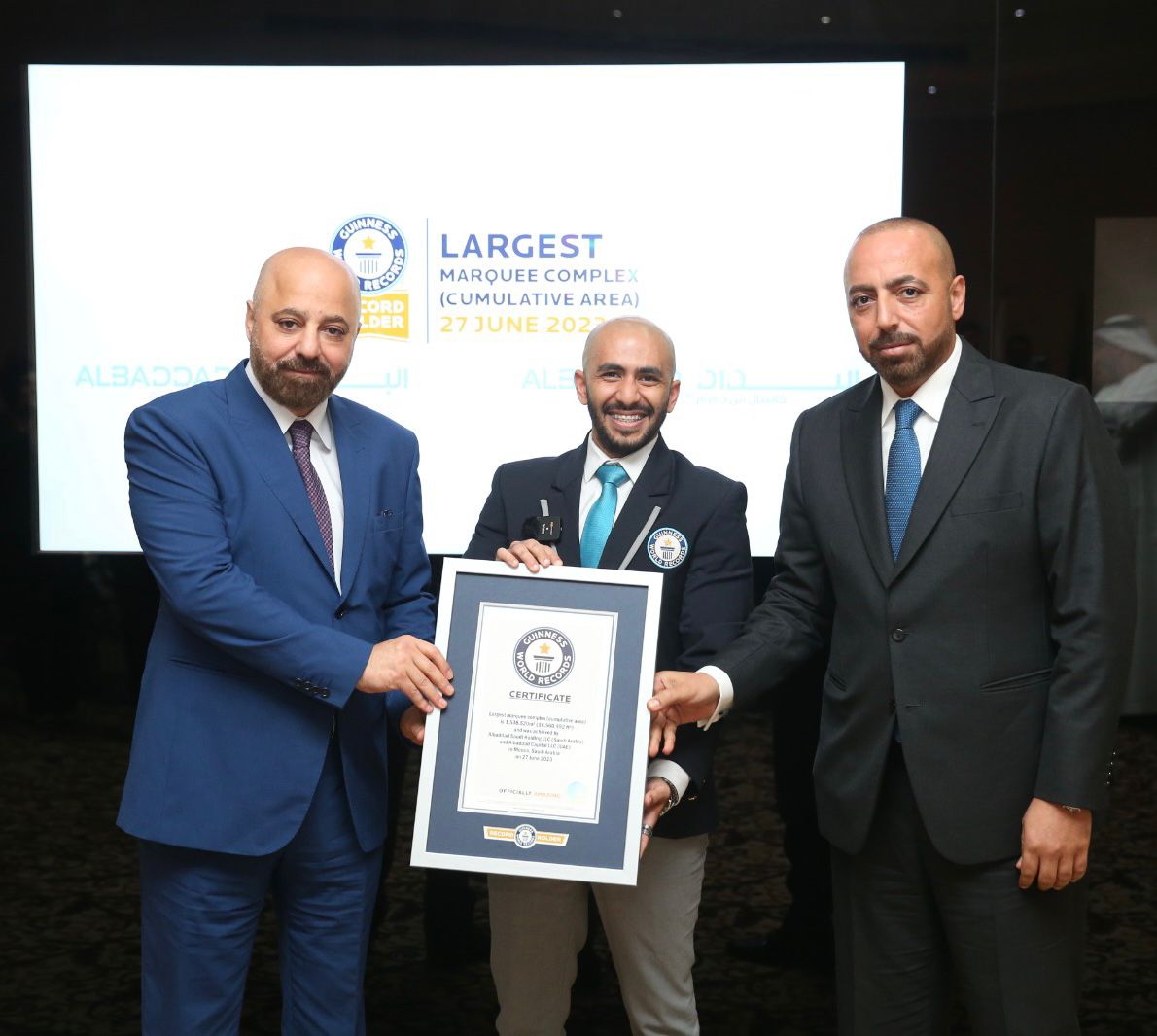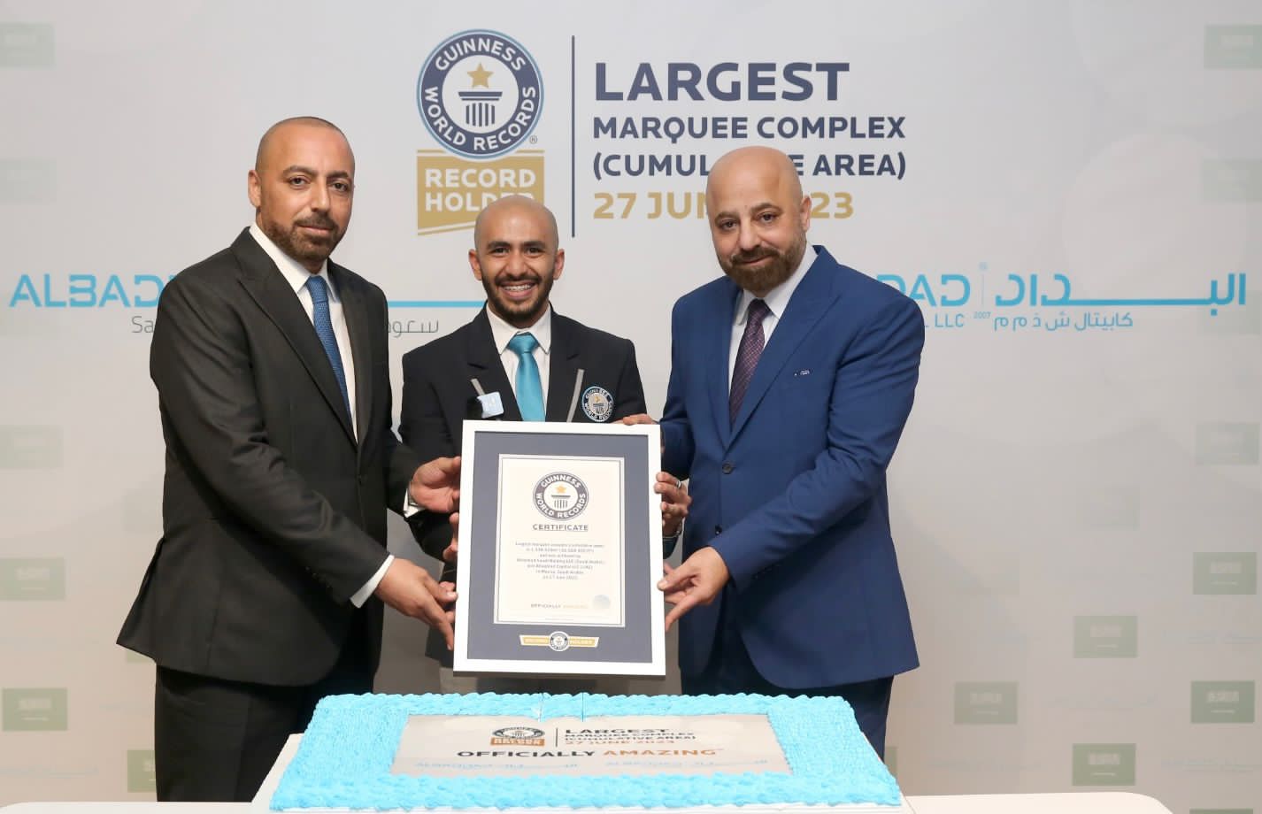 Ammon News - Albaddad Capital, through its arm in the Kingdom of Saudi Arabia, Albaddad Saudi Holding and Albaddad Manasik achieved a new and unique achievement by breaking the Guinness World Records️ title for the Largest Marquee Complex (Cumulative Area), as it built the largest number of mobile and fixed buildings in the world with an area of 1,538,520 sqm during the last Hajj season in Mecca on the 27th of June, constructed in a record period of only three months’ time.