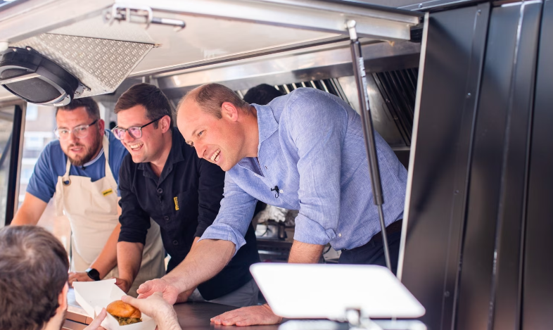 Ammon News - Britain's Prince William has served up a surprise to hungry members of the public when he dished out environmentally friendly burgers from a food truck in south London.