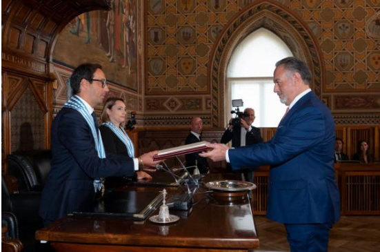 Ammon News - Jordan's accredited and non-resident ambassador to Republic of San Marino, Qais Abu Dayyeh, on Wednesday presented his credentials to the country's Captains Regent, Adele Tonnini and Alessandro Scarano.