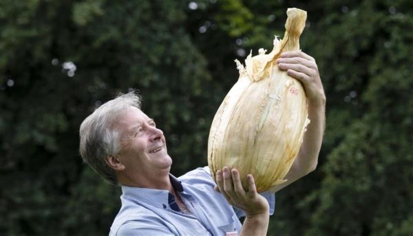 The onion was among colossal cabbages, monumental marrows and very big beetroots judged at the flower show, held at Newby Hall and Gardens near Ripon in North Yorkshire.