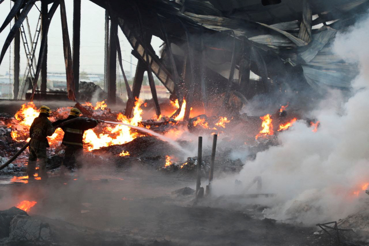 In video and photographs on social media, flames soared into the night sky, with a huge cloud of smoke hanging above the warehouse, but the cause of the explosion was not immediately clear.