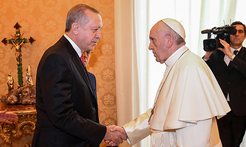 Ammon News - Turkey's President Tayyip Erdogan told Pope Francis in a phone call on Thursday that Israel's attacks on Gaza amounted to a massacre, and that the silence of international community was "embarrasing," the presidency said.