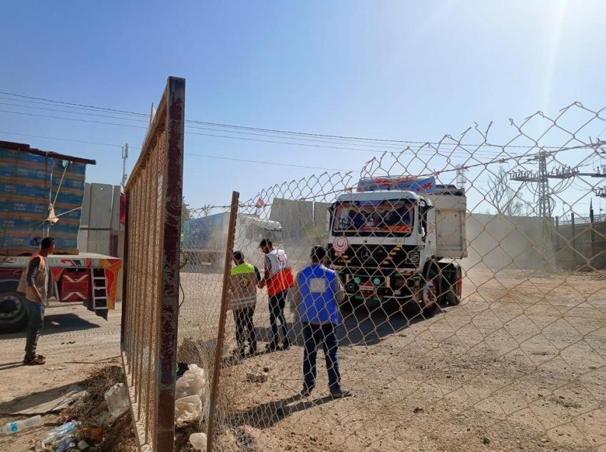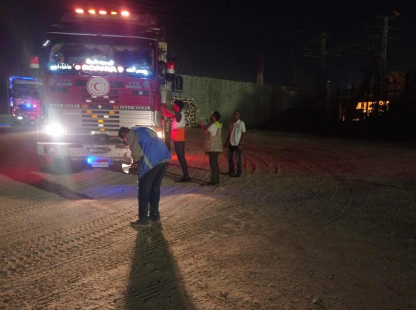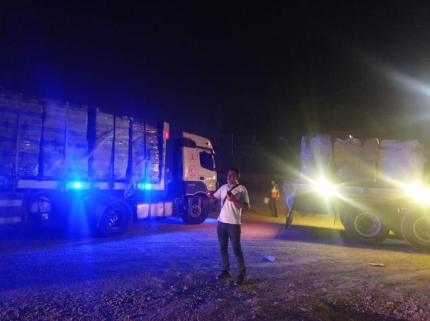 Ammon News - The Palestinian Red Crescent Society (PRCS) said last night that its crews received 93 trucks from the Egyptian Red Crescent loaded with humanitarian relief aid through the Rafah border crossing.