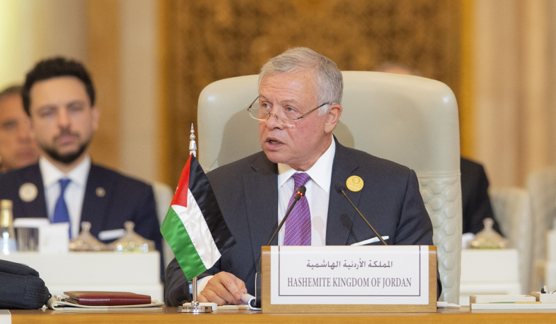 Ammon News - His Majesty King Abdullah II heads Jordan’s delegation at the joint Arab-Islamic Extraordinary Summit on Gaza hosted by Saudi Arabia in Riyadh and delivers a speech.
