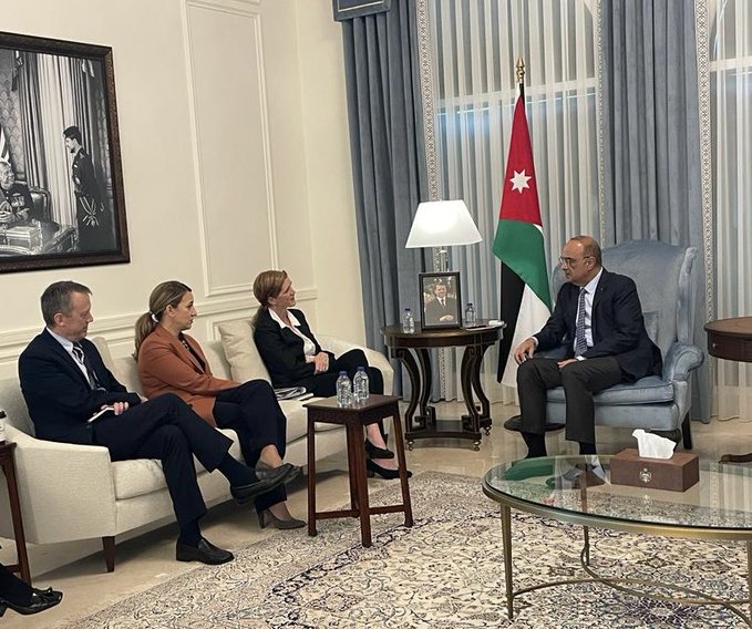 She wrote on her X official account: " Important conversation with Jordan’s Prime Minister Khasawneh today on the need for expanded and sustained humanitarian aid for the Palestinian people. We appreciate the Jordanian leadership in delivering lifesaving aid and critical medical care to Gazans."