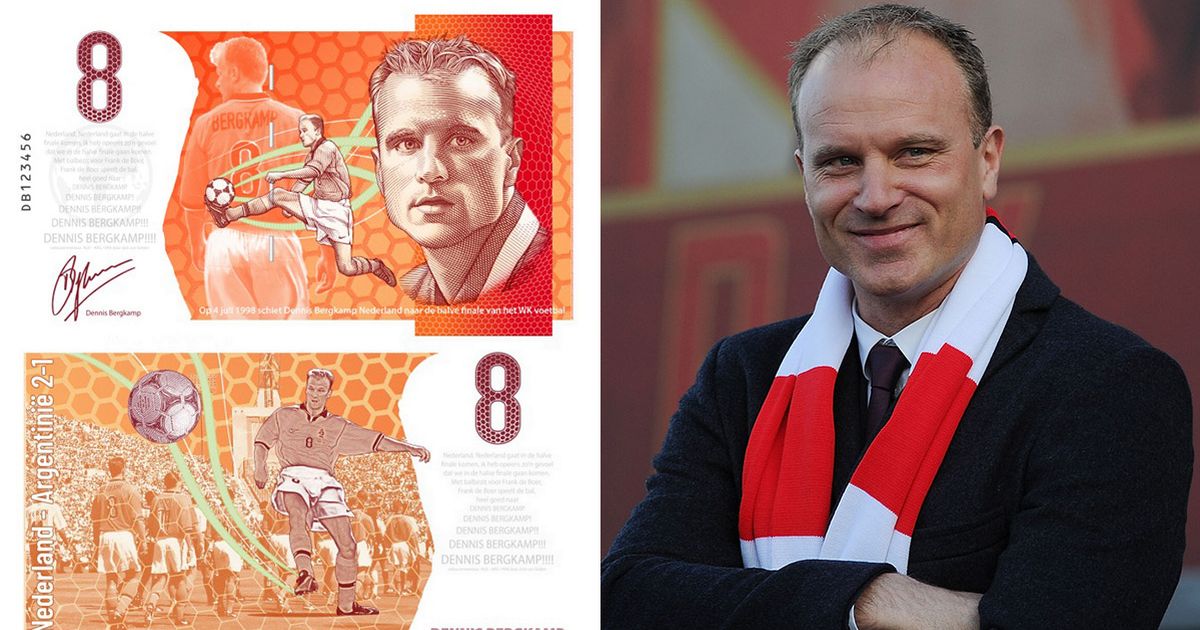 The Dutch treasury have instructed the Royal Enschede printing company responsible for minting Holland’s currency to produce a unique eight-euro note. The banknote will include images of Bergkamp’s brilliant strike to condemn Argentina to a quarter-final defeat in Marseille during the 1998 World Cup in France as well as a portrait of the striker.