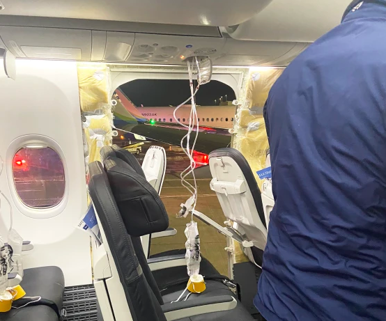 Alaska described what happened as an "incident." A photo from a passenger on board showed an entire panel missing from a side of the fuselage, next to a row of seats.