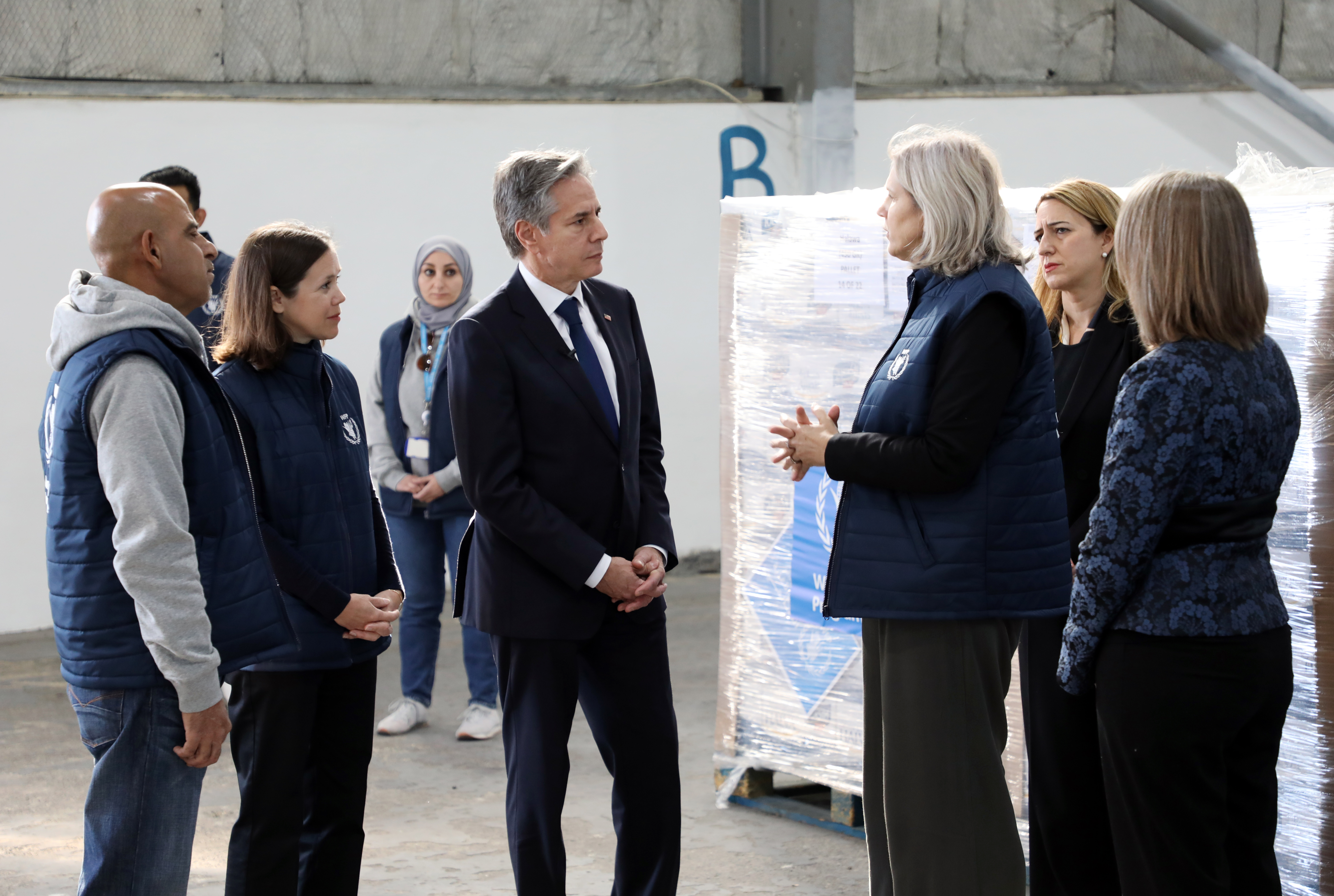 Ammon News - The United States Secretary of State Antony Blinken conducted an inspection visit on Sunday to the United Nations World Food Program (WFP) warehouses in Amman, overseeing the coordination of humanitarian aid destined for the Gaza Strip.