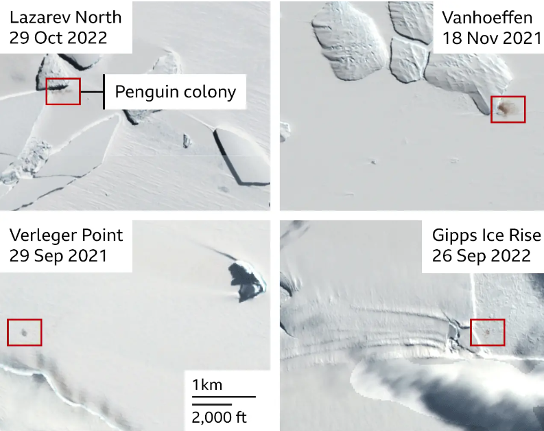 At least one of the newly identified colonies - named Lazarev North - is likely a grouping of birds that had to abandon a nearby site to take up a more favourable home.