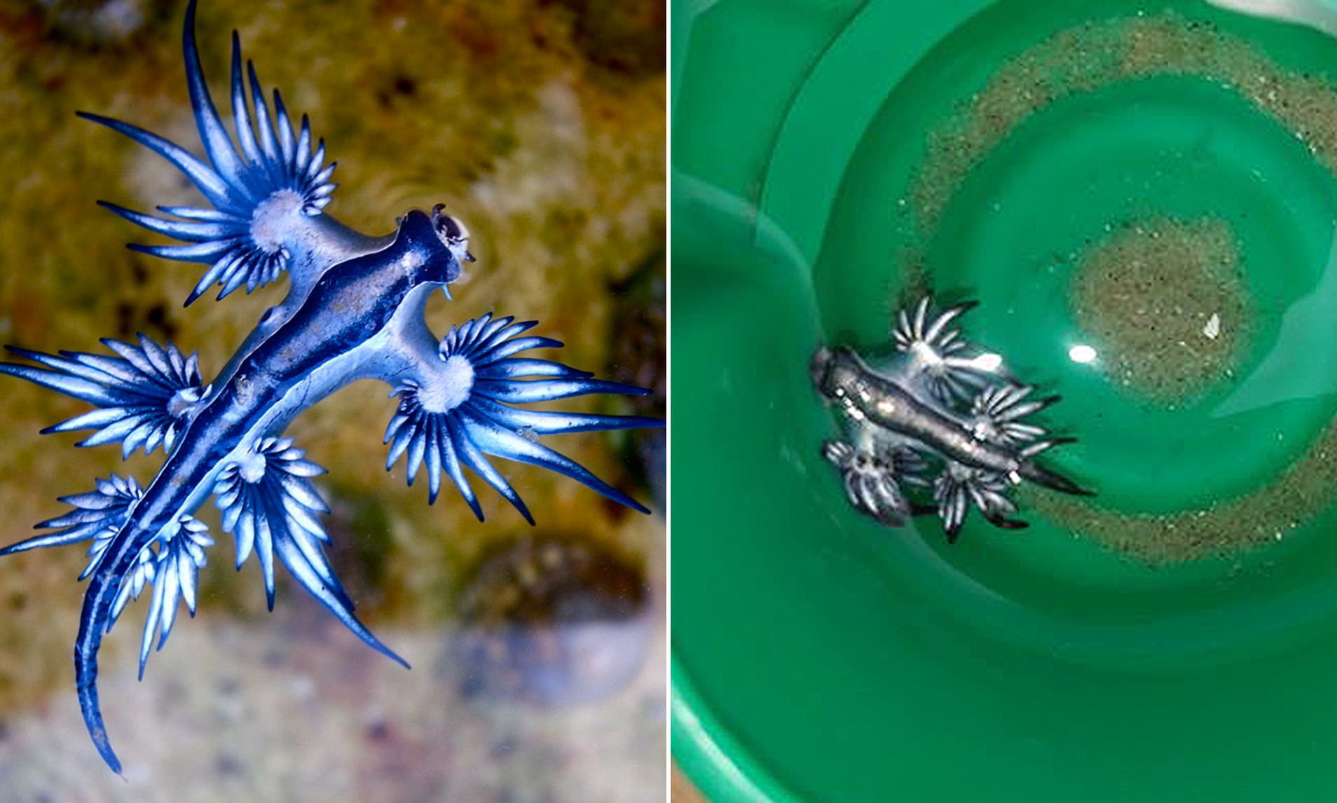'Warning: do not touch the blue dragon!' one local research institute alerted their social media followers, posting a researcher's photos of the toxic, blue creature.